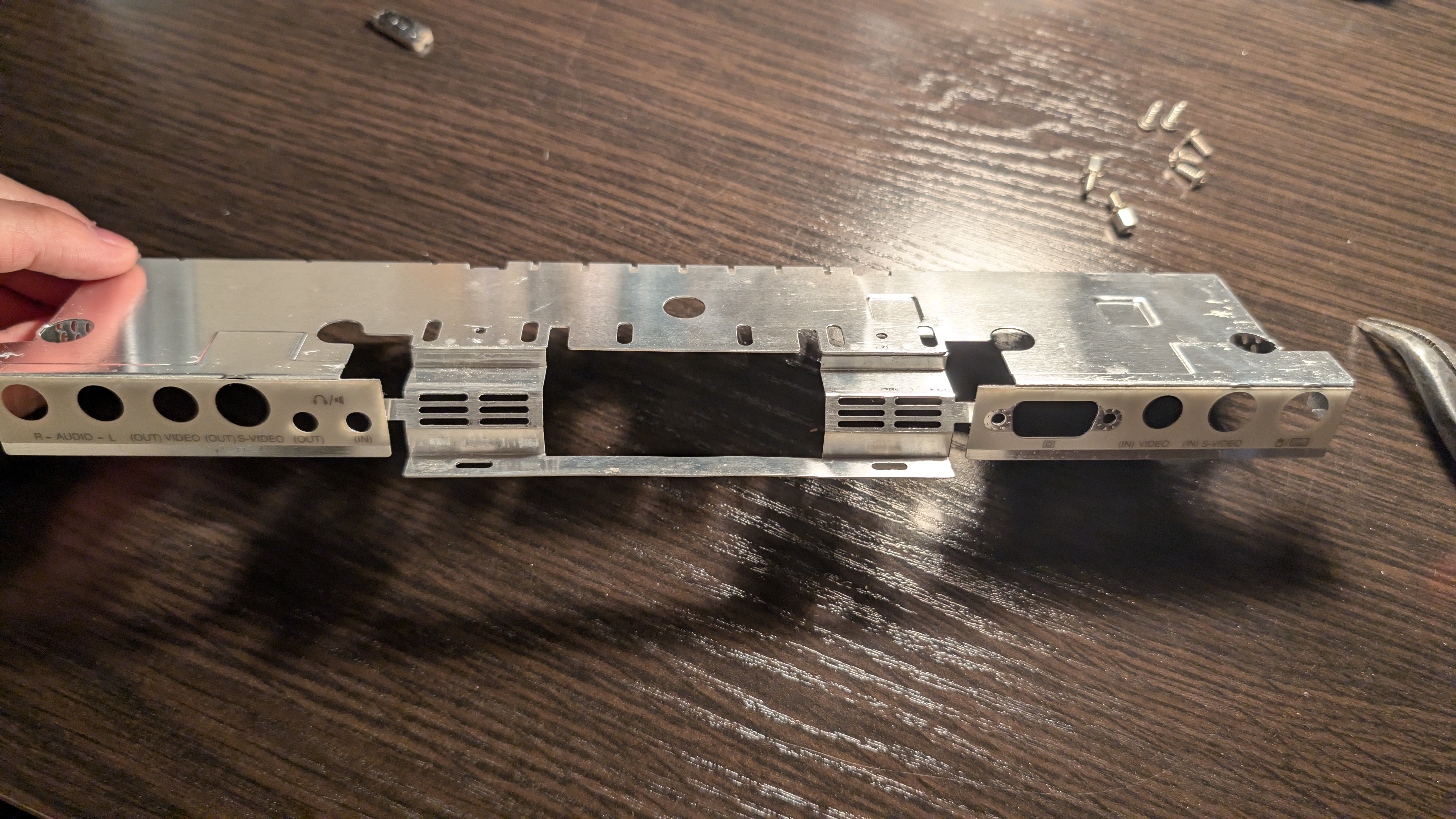 And below are some pictures after the disassembly. The case is held by 5 screws, 2 hidden behind anti-slip rubber. We can see the manufacture date (May 22 1996) and a few chips: